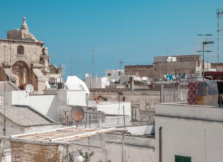 Il mare, così vicino, accarezza la vista e il sole regala tepore all’anima, predisponendo gli ospiti a gustare una appetitosa colazione a buffet, con prodotti tipici pugliesi e bevande calde. Arredata con sedie e tavolini, predisposti attorno a un gazebo luminoso, la terrazza è il posto in cui potersi trasportare dalla brezza del mare, assaporando i sapori autentici del luogo e osservare, tra le viuzze del centro storico di Monopoli, il placido scorrere della vita di tutti i giorni.