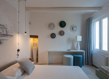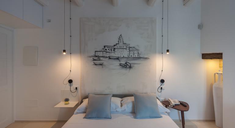 Arredata con mobili realizzati su misura da maestri artigiani, utilizzando legni e materiali pregiati, consente di entrare in contatto con le bellezze del posto appena varcata la soglia della porta, ammirando la spalliera del letto matrimoniale, realizzata da una pittrice locale, raffigurante uno scorcio del centro storico di Monopoli.