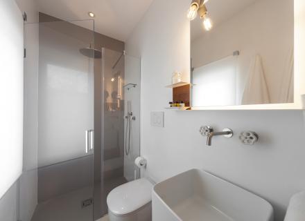 La camera è dotata di ampio bagno privato con doccia, fornito di teli, asciugamani, set cortesia, asciugacapelli, bilancia pesa persone.